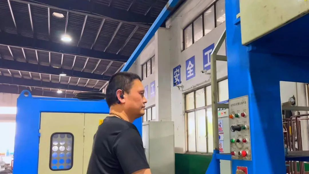 ▲拉銅車間班組成員正在進行機器調(diào)試